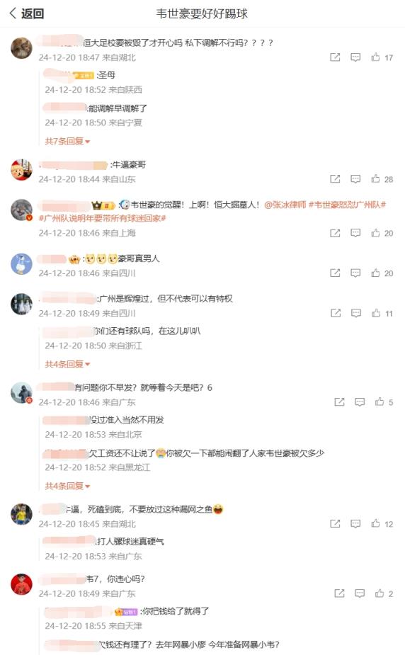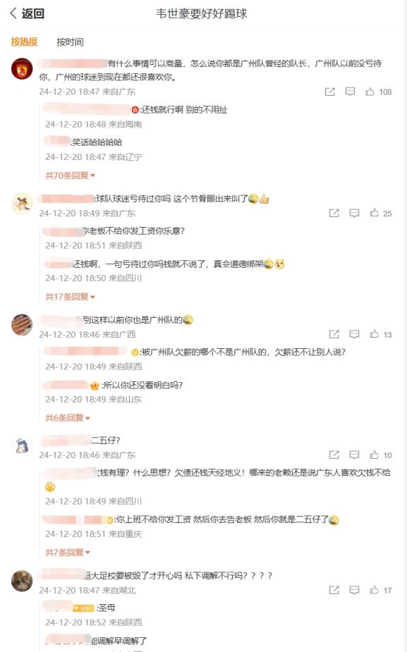 你怎么看?韋世豪微博評(píng)論區(qū)兩種聲音:廣州待你不薄vs欠債還錢(qián)